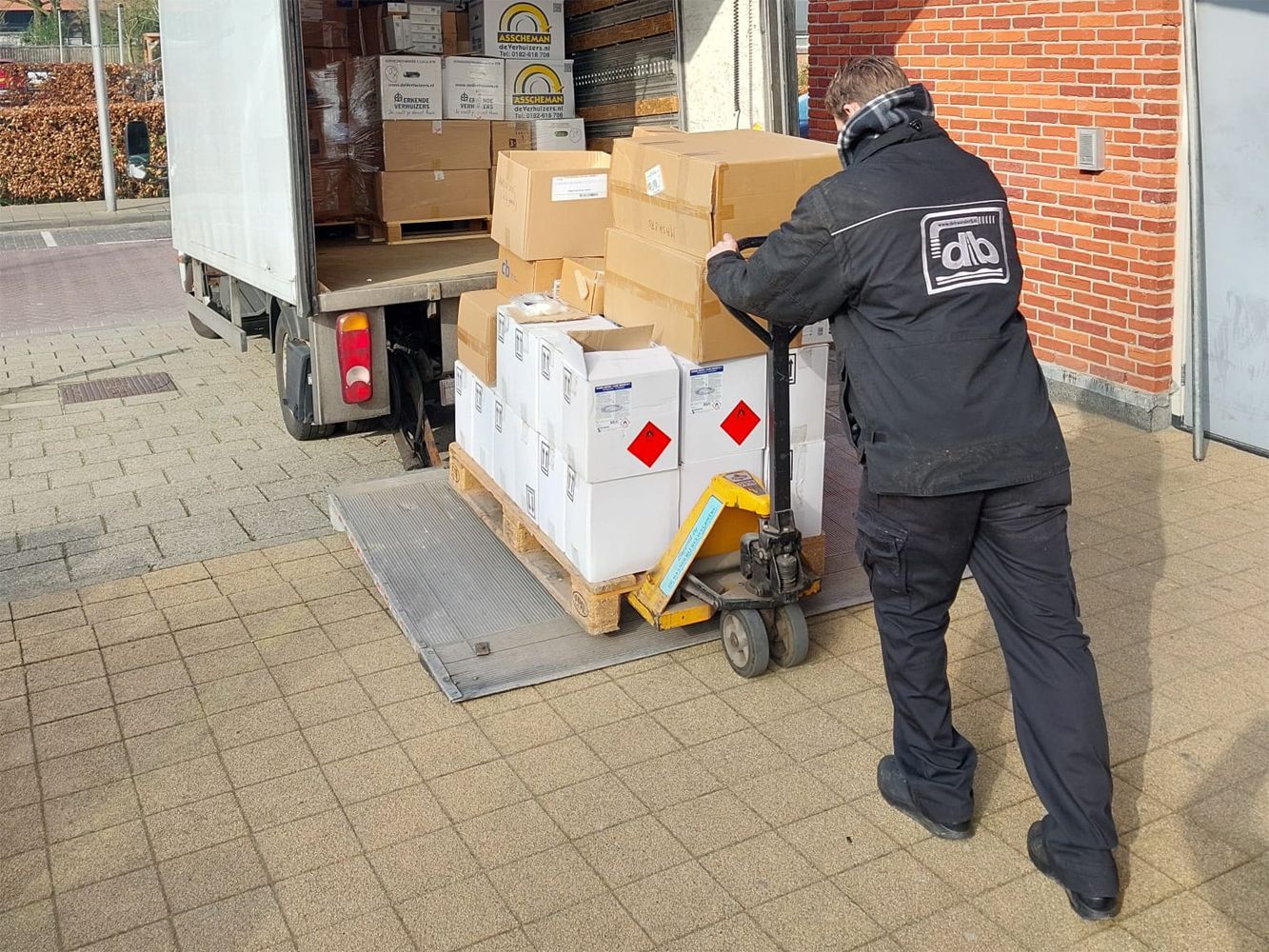 Maar liefst 6 volgestapelde pallets met inco-materiaal en andere overtollige verpleegartikelen vulden de vrachtwagen. Begin april worden deze spullen bezorgd bij verpleeghuizen van stichting Emmaus in Bosnië waarmee stichting Goede Doelen Zorgpartners Midden-Holland samenwerkt.