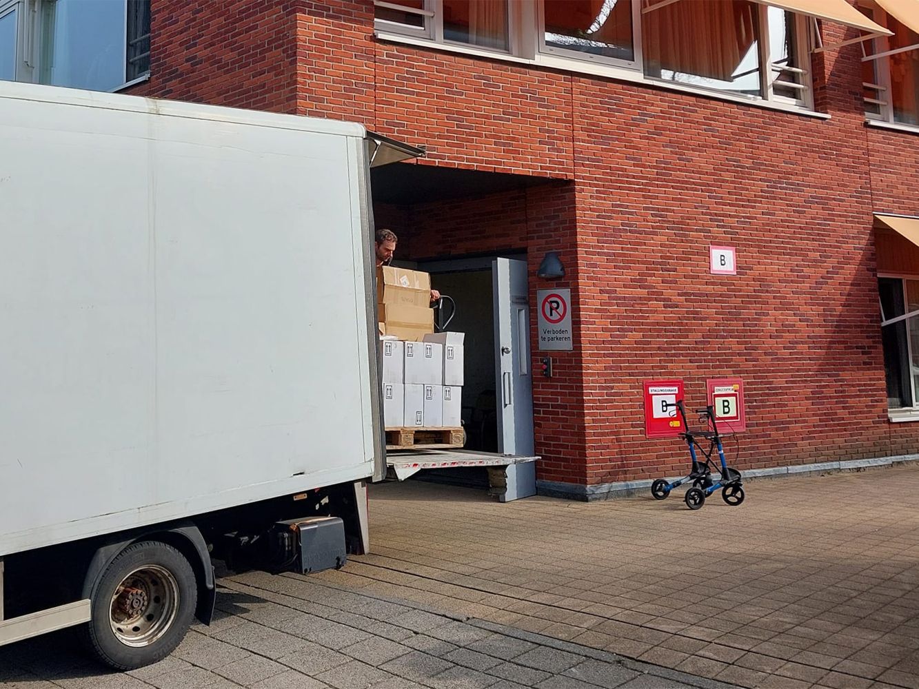 Afgelopen week haalden vrijwilligers van stichting Proplan uit Gouda het door de meeste centra én de Thuiszorg van Zorgpartners Midden-Holland ingezamelde nieuwe incontinentiemateriaal op bij Ronssehof.
