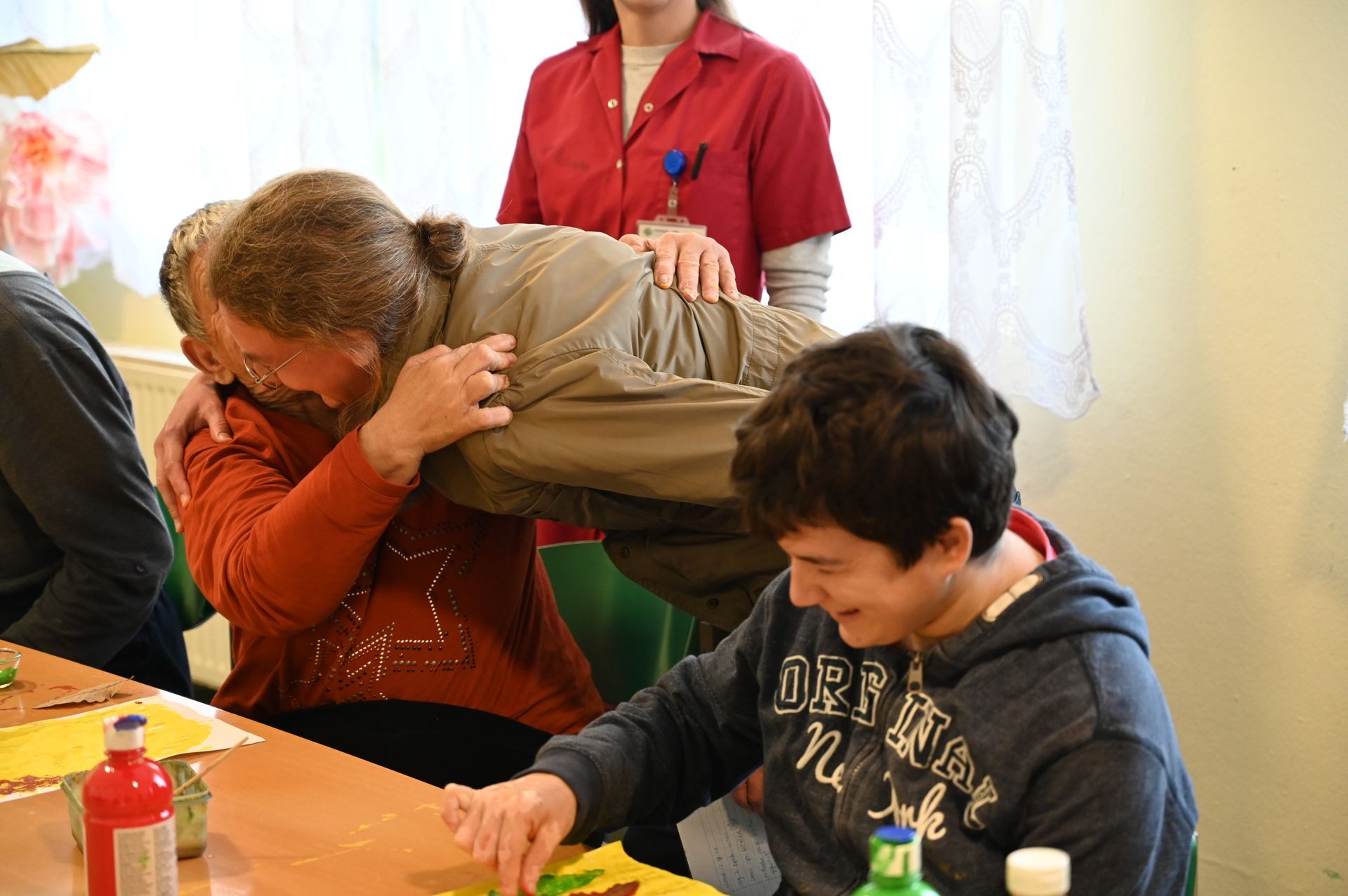 De directeur, de arts en de verpleegkundige van het verpleeghuis ontvangen ons heel hartelijk. Een korte rondleiding door de moderne behandelkamers volgt. Na een heerlijke lunch lopen we mee met de arts tijdens haar ronde langs de bewoners. Wat volgt zijn hartelijke ontmoetingen, vrolijkheid en ondeugenieterij. Niet bepaald iets wat je verwacht van zwaar getraumatiseerde mensen, toch? De 38 dames en 2 heren zijn vooral heel dankbaar dat zij hier mogen wonen. En dat merk je aan alles.